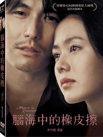 由青龍獎影帝鄭雨盛與大滿貫影后孫藝真攜手演出催淚愛情經典【腦海中的橡皮擦】,以4K修復為母源以饗影迷。劇情描述富家千金秀真(孫藝真 飾)和已婚男友相約車站私奔,卻發現自己早被拋棄。她與建築公司工頭的哲洙(鄭雨盛 飾)相遇邂逅,對彼此產生好感。哲洙深知自己和秀真是不同世界的人,加上秀真的父親的大力反對,秀真愛的濃烈而直接向哲洙求婚。秀真和哲洙的婚後生活幸福得不可思議,哲洙成功考取建築師執照,秀真的時裝設計師事業也步上軌道。就在此時,秀真發現她的記憶力一天比一天衰弱,檢查後得知自己竟罹患早發性阿茲海默症,而病魔深深吞噬著相愛的他們…。
